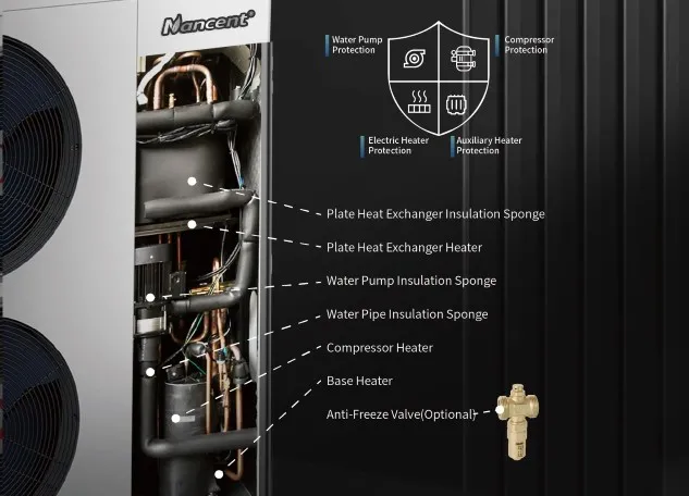 Mit der Nancent 4D-Vollinvertertechnologie kann die Wärmepumpe den Status von Kompressor, Lüftermotor, Wasserpumpe und EEV präzise anpassen, um unter verschiedenen Bedingungen einen möglichst leisen Betrieb zu erzielen